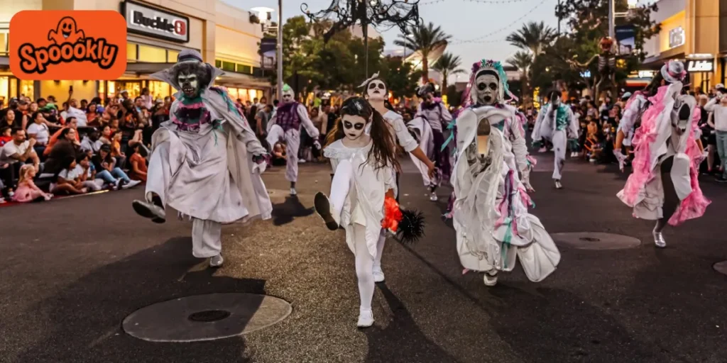 The entertainment lineup blends theatrical floats, stilt walkers, drummers, dancers, and giant puppets. Each unit is choreographed with upbeat Halloween music and synchronized lighting. Kids especially love the confetti cannons and glowing props.